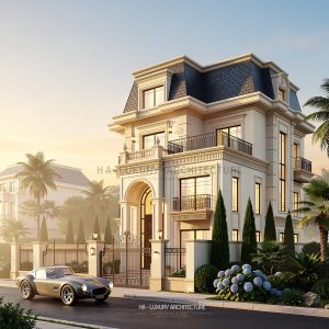 ▪️Giữa khoảnh khắc hoàng hôn dịu nhẹ, “Sunset Manor” hiện lên như một bản giao hưởng kiến trúc đầy cảm xúc – nơi vẻ đẹp cổ điển không chỉ được tái hiện mà còn được nâng tầm thành biểu tượng vượt thời gian. Công trình mang đậm phong cách Traditional European, với những đường nét phào chỉ tinh xảo, tỷ lệ hình khối chuẩn mực và bố cục đối xứng kinh điển, tất cả hòa quyện tạo nên một tổng thể sang trọng, chuẩn mực và đầy khí chất.