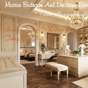 Không gian master bedroom và dressing room tại Villa Bougainvillea là sự hòa quyện tinh tế giữa vẻ đẹp cổ điển châu Âu và cảm xúc sống đẳng cấp, nơi mỗi chi tiết đều được chăm chút để tôn vinh sự thanh lịch và chuẩn mực của nghệ thuật sống thượng lưu.